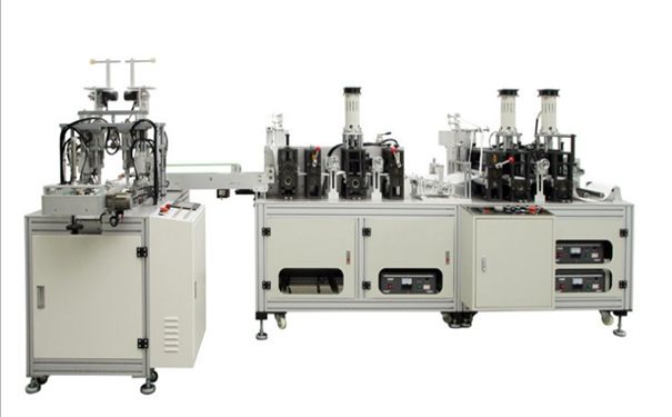This Non Woven Face Mask Making Machine is a fully automatic one-to-two mask machine, one body machine drives two ear band machines. After the main body machine outputs the mask body, the mask body sheet is conveyed to the turning mechanism by a conveyor belt structure. The reversing mechanism is used to flip the mask plate onto the belt connected to the ear band machine, and then the mask sheet is conveyed to the first mask plate on the front of the ear band machine through the conveyor belt, and finally the mask sheet is placed on the ear band by the cylinder pressing In the mask plate of the machine, the ear band machine is used to complete the welding of the ear bands of the mask and the edging, thereby completing the production of an ear band mask product. This machine adopts PLC, touch screen control, single-phase motor for main conveyor belt, stepping motor turning, precise transmission, stable control and adjustable speed.